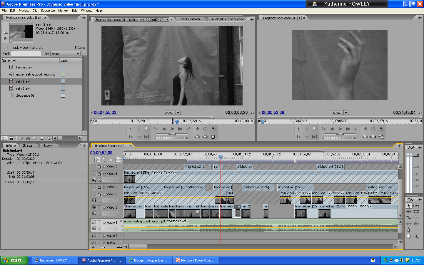 The music video that I have created uses conventions of a real media product as it is demonstrating to the audience the band's music. My video advertises the band and the song as it presents the song visually in order to emphasise the lyrics, which is what my video does. However the usual conventions of a rock video would mainly be performance based, with the band performing and having close ups of the instruments and the band members, mine does not. Instead I challenged these conventions by making my video simple, it does not feature any performance in it at all and does not show the band members. Also it does not have a particular narrative yet shows a performance of a different kind, as it relates more to the lyrics of the song than the image of the band, because usually rock music videos can be more style over substance. My video relates to the lyrics in a more metaphorical sense as the lyrics are about freedom and moving on from the past to a better healthier future, the video shows the model moving on as the water represents her washing away her past troubles and feeling good that she has moved on. The use of the slow motion and reverse effects make the video more interesting and emphasise the point the lyrics are making of her becoming free. Also the lyrics adopt a lot of naturally imagery, the video appears quite natural and organic as it is simple and shows the nature of the water and the model herself acting natural with natural movements, yet the reverse effects make the organic simple idea more unique and interesting for the audience to watch.